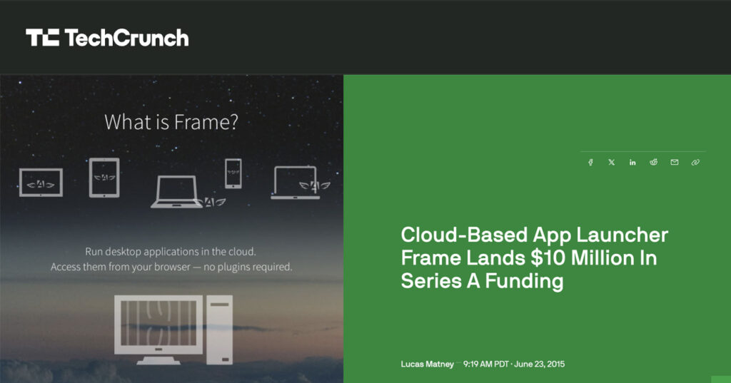 Frame was a cloud startup with a radical idea that we sublimated into an iconic hook: “Run Any Software in a Browser.” In 2014, that sounded impossible. But we didn’t stop at the hook, we decided to make the world experience it.